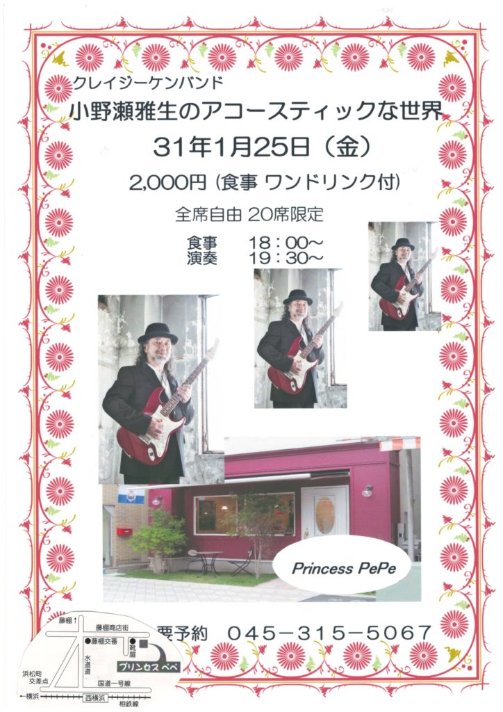 「プリンセスペペ」さんにて、ソロ・アコースティックミニライヴを開催します。